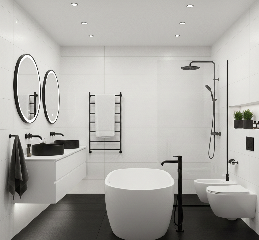 Ceramica de baie in alb clasic sau negru modern