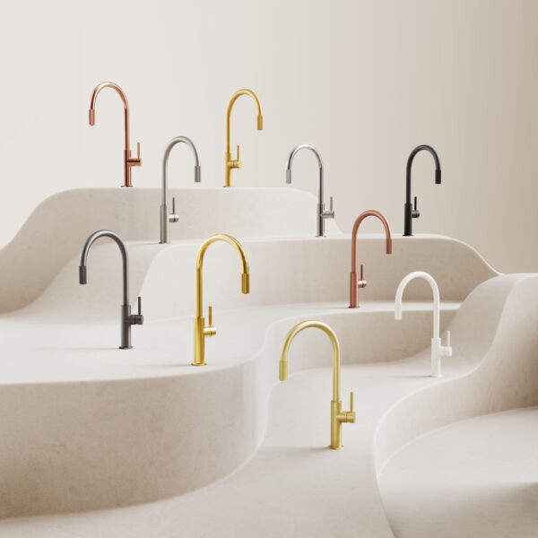 Designul contemporan al colectiei cuprinde proportii bine echilibrate si ofera o functionare intuitiva. Detaliile definite curat marcheaza cele doua fluxuri de apa separate – apa obisnuita prin mixer si apa filtrata din varful scurgerii. Aceste elemente distinctive sunt compensate de linia mixerului minimalist cu curbe subtile.