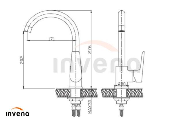 Cei care au bucătării mici știu cât de important este să organizeze bine spațiul. Cu forma sa minimalistă, seria Invena DOKOS este ideală pentru spațiile mici. Combinația de culori clasică crom/alb și forma modernă vor înveseli orice bucătărie. Gura de scurgere pivotantă și aeratorul de economisire a apei vor asigura o funcționalitate deplină și eficiență.
