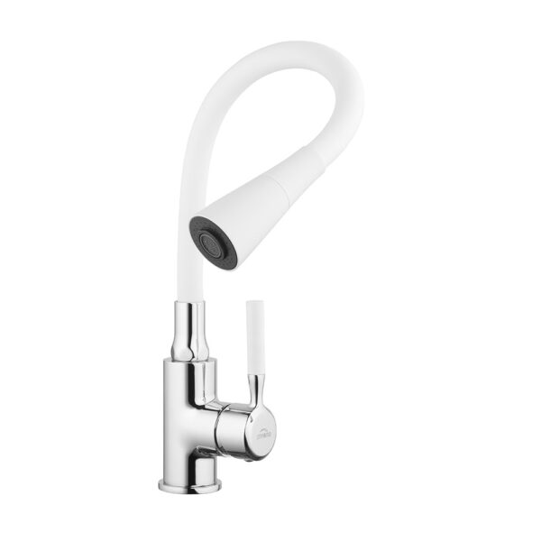 Bateria de bucătărie HULA are o gură de scurgere flexibilă, foarte practică, cu memorie de formă – astfel încât să o puteți ajusta oricând în funcție de dumneavoastră. Combinația dintre culoarea albă și forma unică se potrivește perfect în orice bucătărie, unde va atrage, fără îndoială, privirile la prima vedere. Suprafața netedă și durabilă asigură o curățare ușoară.