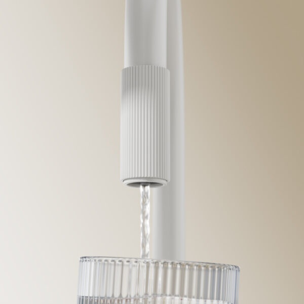 Designul contemporan al colectiei cuprinde proportii bine echilibrate si ofera o functionare intuitiva. Detaliile definite curat marcheaza cele doua fluxuri de apa separate – apa obisnuita prin mixer si apa filtrata din varful scurgerii. Aceste elemente distinctive sunt compensate de linia mixerului minimalist cu curbe subtile.