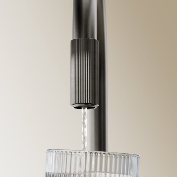 Designul contemporan al colectiei cuprinde proportii bine echilibrate si ofera o functionare intuitiva. Detaliile definite curat marcheaza cele doua fluxuri de apa separate – apa obisnuita prin mixer si apa filtrata din varful scurgerii. Aceste elemente distinctive sunt compensate de linia mixerului minimalist cu curbe subtile.