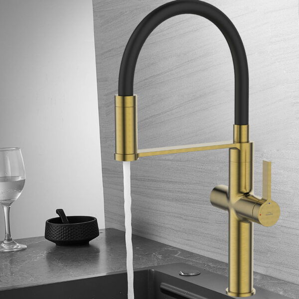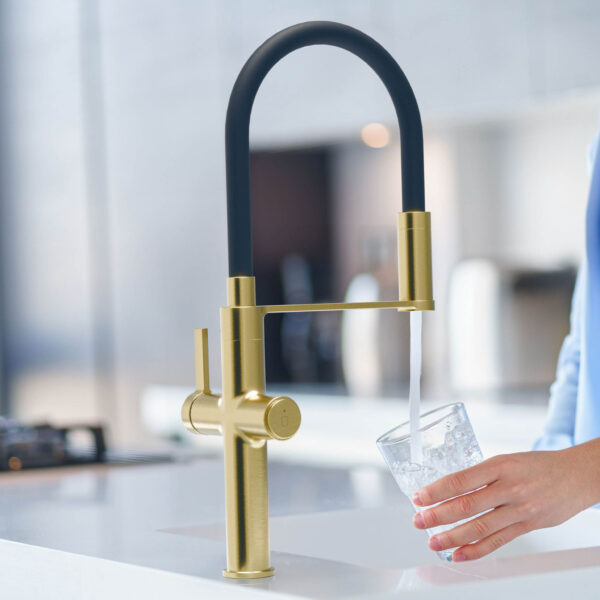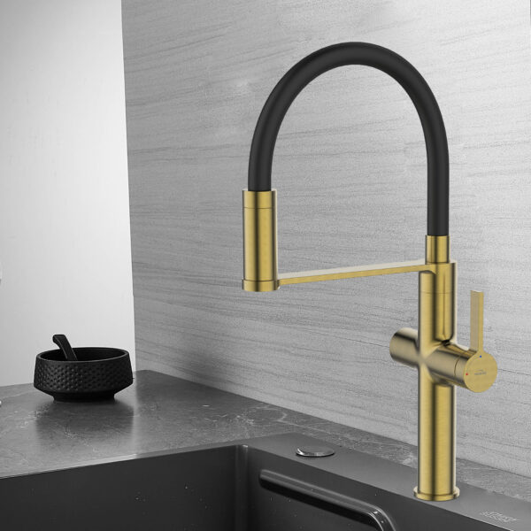 Baterie de bucătărie cu sistem de filtare al apei Invena PERISA negru cu auriu periat