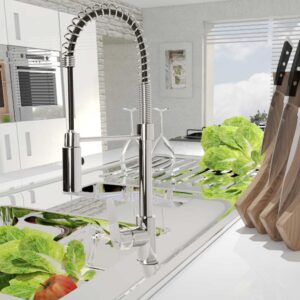 Invena Dokos este o baterie de bucătărie modernă, ideală pentru bucătăriile cu o insulă. Datorită formei sale impunătoare, este recomandată pentru camere mari. Combinația dintre cromul clasic sub forma unui arc și un furtun negru face ca produsul să fie interesant, neobișnuit și foarte modern. Gura de scurgere cu funcție dublă (normală și spray) oferă confort pentru spălarea vaselor și pregătirea mâncării.