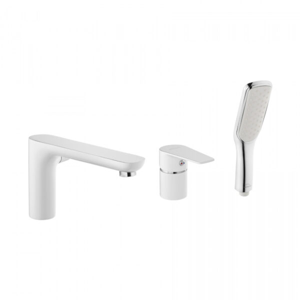 Bateria de cadă cu 3 orificii Invena Dokos albă este o propunere pentru iubitorii de soluții non-standard. Datorită poziționării mixerului pe cădă, fiecare baie va fi confortabilă fără să vă faceți griji că veți lovi dușul de cadă. Designul modern, combinat cu funcționalitatea, va oferii băi dumneavoastră o notă de clasă și eleganță.