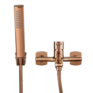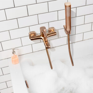 Bateria de cadă Invena Glamour în culoarea cuprului combinată cu o cadă albă este o soluție ideală pentru băile moderne, oferind un aspect luxos. Bateria, împreună cu setul de duș și restul accesoriilor de baie din serie, se va potrivi cu camerele albe și cu o mare varietate de materiale, cum ar fi lemnul, marmura sau culorile întunecate îndrăznețe, printre altele.