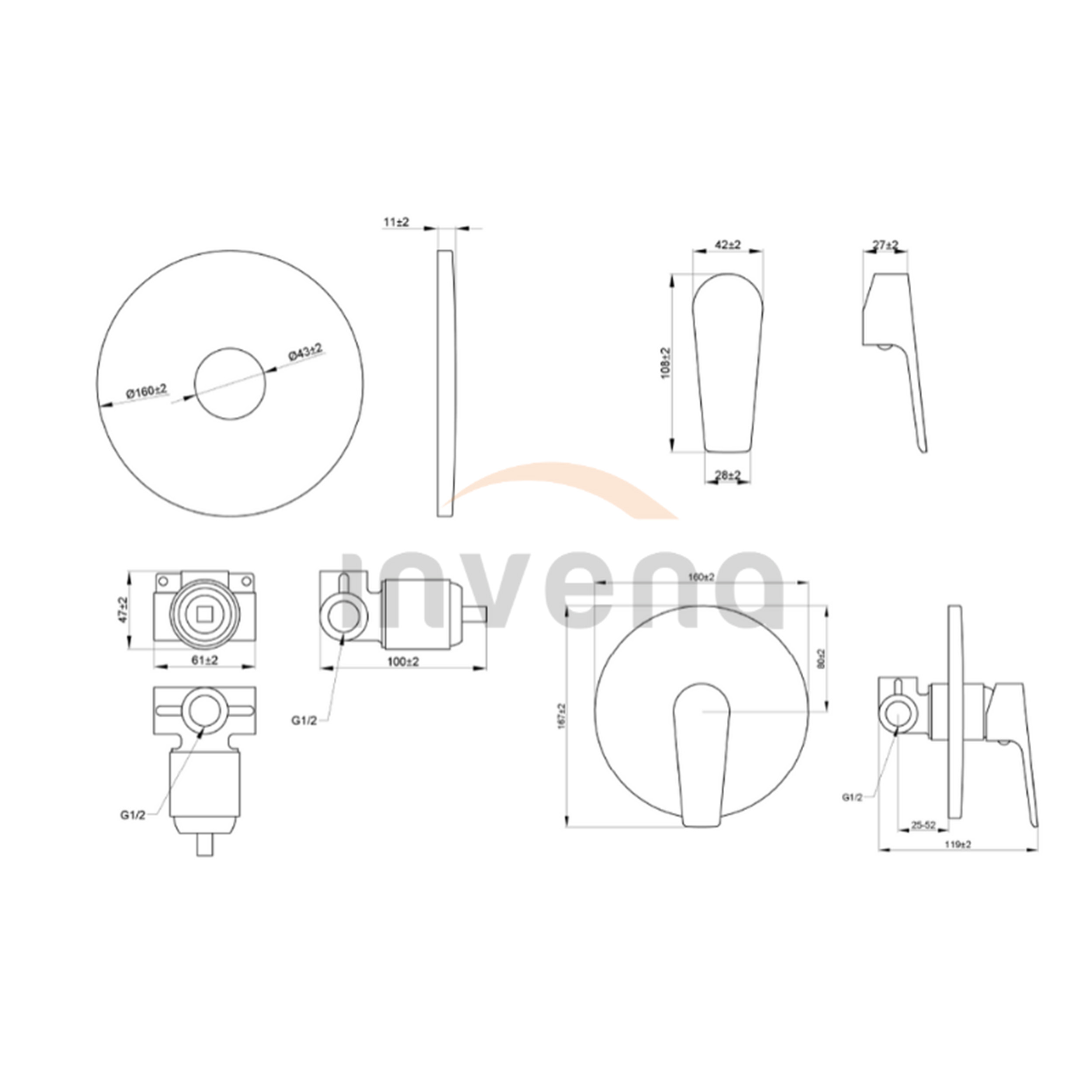 Fii primul care scrii o recenzie pentru „Baterie de duș încastrată, rotundă, 1 funcție Invena DOKOS crom”