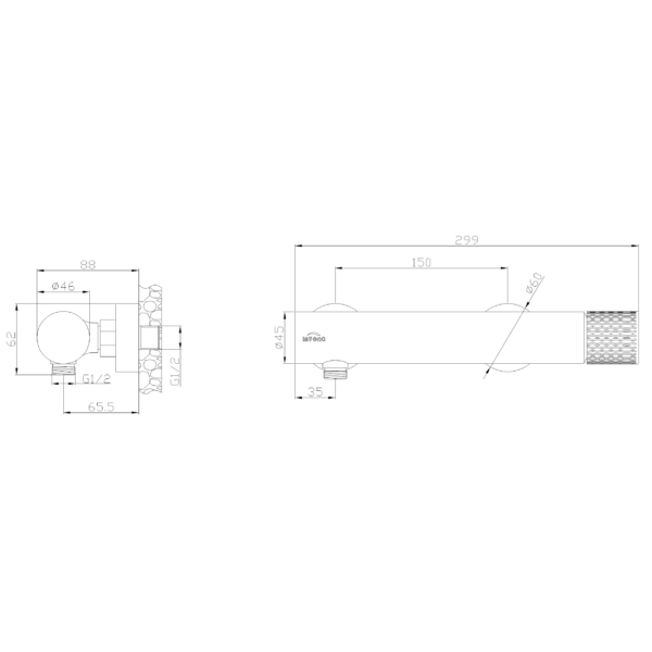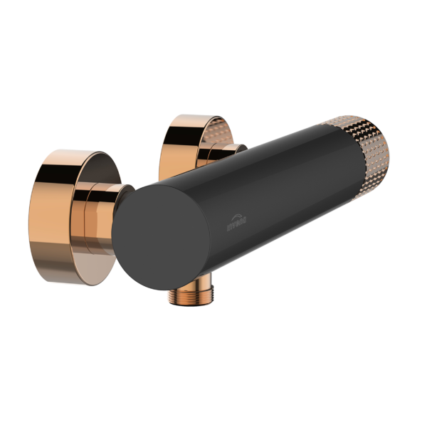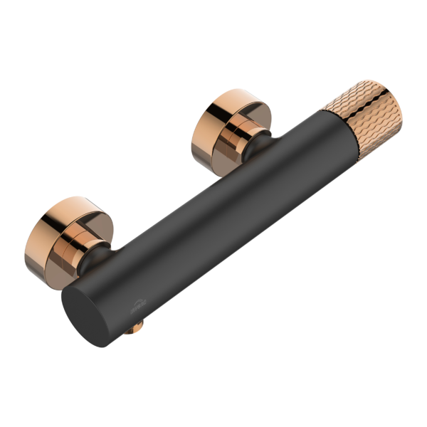 Bateria de duș completează gama de accesorii pentru baie Invena Moonlight. Corpul negru brut al bateriei este combinat cu un mâner subtil, delicat, finisat în culoarea rose gold. Compoziția generală rezultă într-o formă extrem de sofisticată. Cu ajutorul acestei baterii de duș veți obține o zonă de duș luminoasă și elegantă.