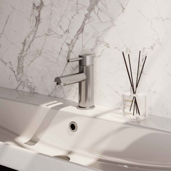 Această baterie de lavoar are un design cool și, prin urmare, știe cum să-și găsească locul în orice baie cu un design industrial. Acționare robinetului cu o singură manetă, pe care o folosiți pentru a potrivi temperatura și debitul jetului de apă. Robinetul dispune și de tehnologia ColdStart de la Brauer. Acest lucru asigură că robinetul oferă întotdeauna apă rece mai întâi. Abia după ce se rotește mânerul se schimbă temperatura. Acest lucru economisește și mai multă energie!