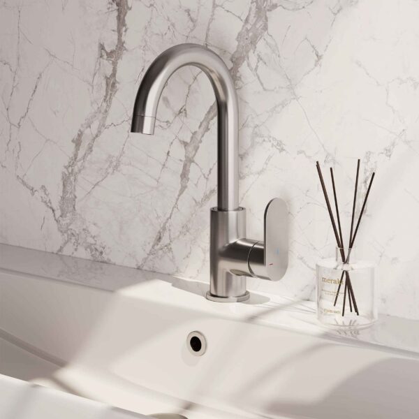 Acest robinet pentru chiuvetă Brauer are un design cool și, prin urmare, știe cum să-și găsească locul în baie cu un design industrial. Fiind ușor de manevrat prin intermediul mânerului, aceasta vă permite să determinați atât temperatura, cât și dimensiunea jetului de apă. Acest robinet este echipat cu o tehnologie Brauer ColdStart care economisește energie. Robinetul poate fi combinat bine cu alte produse Brauer din seria Edition.