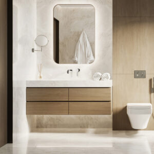 Bateria de lavoar încastrată Dafni este o soluție excelentă pentru cei care doresc să economisească spațiu în zona de lavoar. Mânerul interesant cu formele sale rotunde este ideal pentru băile decorate în stil minimalist.