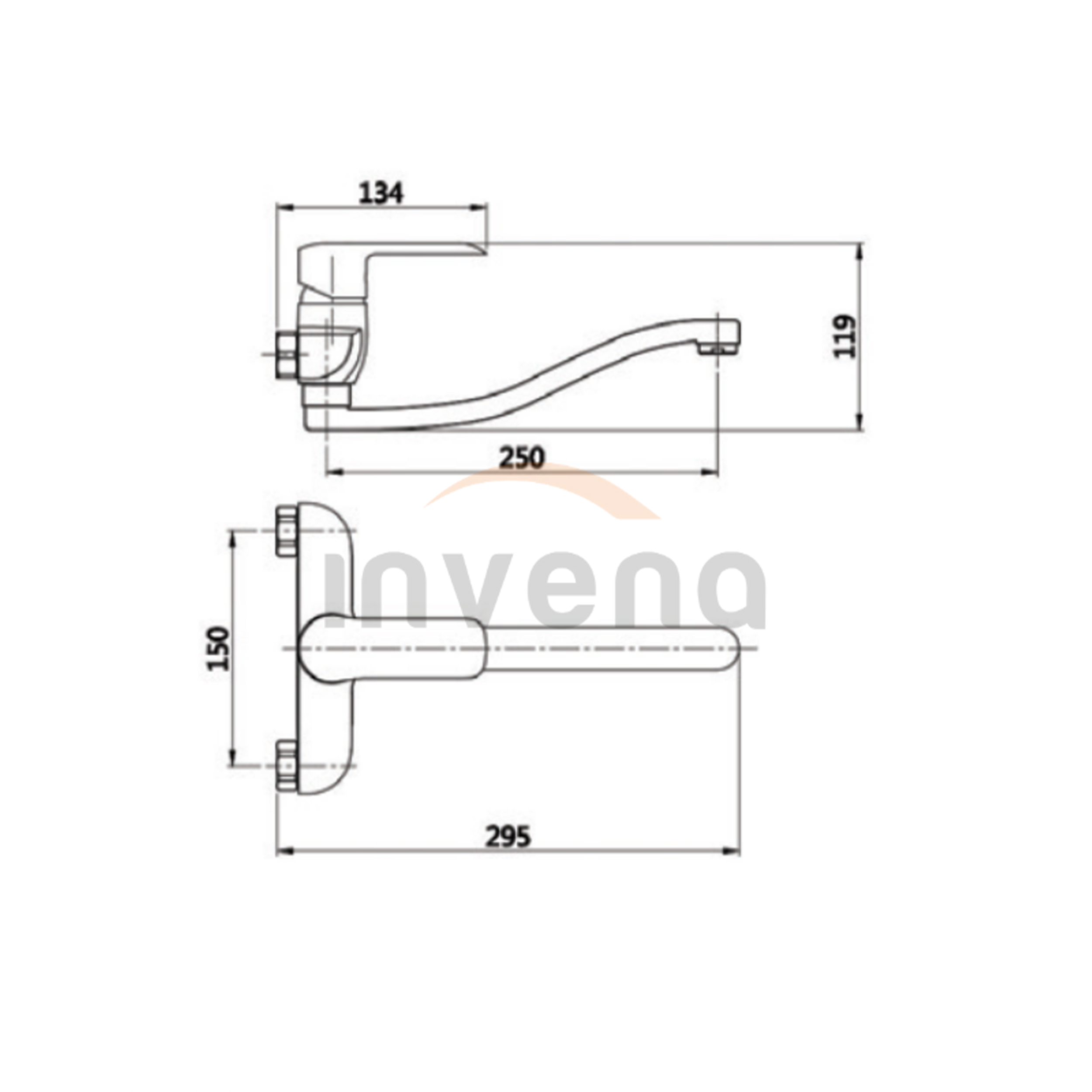 Bateria de bucătărie Siros pentru perete este o soluție modernă pentru casele cu instalații sanitare tradiționale. Are un aerator din plastic care economisește apă și o gură de scurgere pivotantă, ceea ce îl face atât ecologic, cât și funcțional.