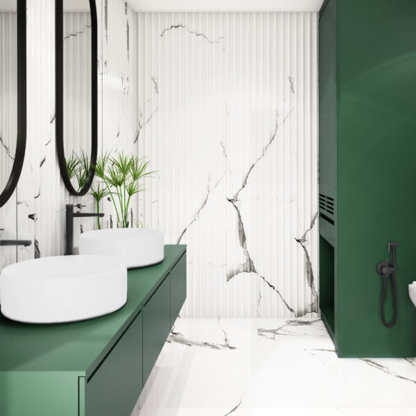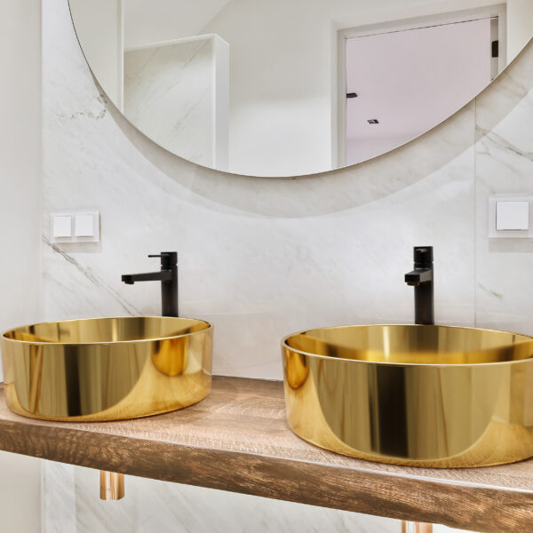 Bateria de lavoar înaltă neagră Invena Glamour combinată cu un lavoar alb este o soluție, oferind un aspect luxos, și este disponibil practic pentru toată lumea. Bateria, împreună cu restul accesoriilor de baie din serie, se va potrivi cu camerele albe și cu o mare varietate de materiale, cum ar fi lemnul, marmura sau culorile întunecate îndrăznețe, printre altele.
