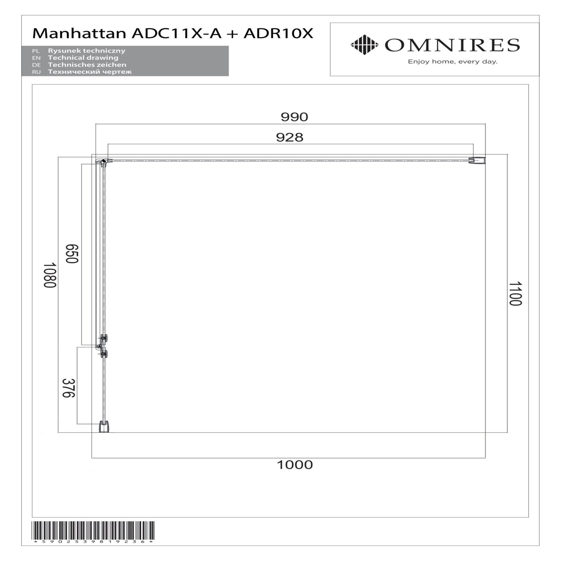 - Dimensiune perete cu usa: 110 cm