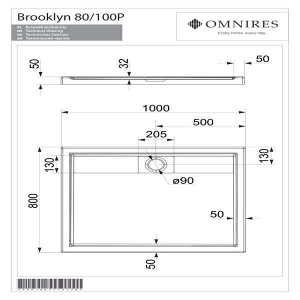 Cadita de dus acrilica Omnires Brooklyn este echipata cu stratul antibacterian CleanShield ce imbunatateste proprietatile igienice ale produsului si faciliteaza curatarea. Cadita poate fi instalata in mod traditional, pe podeaua baii sau cu marginea superioara pozitionata la acelasi nivel cu suprafata podelei.