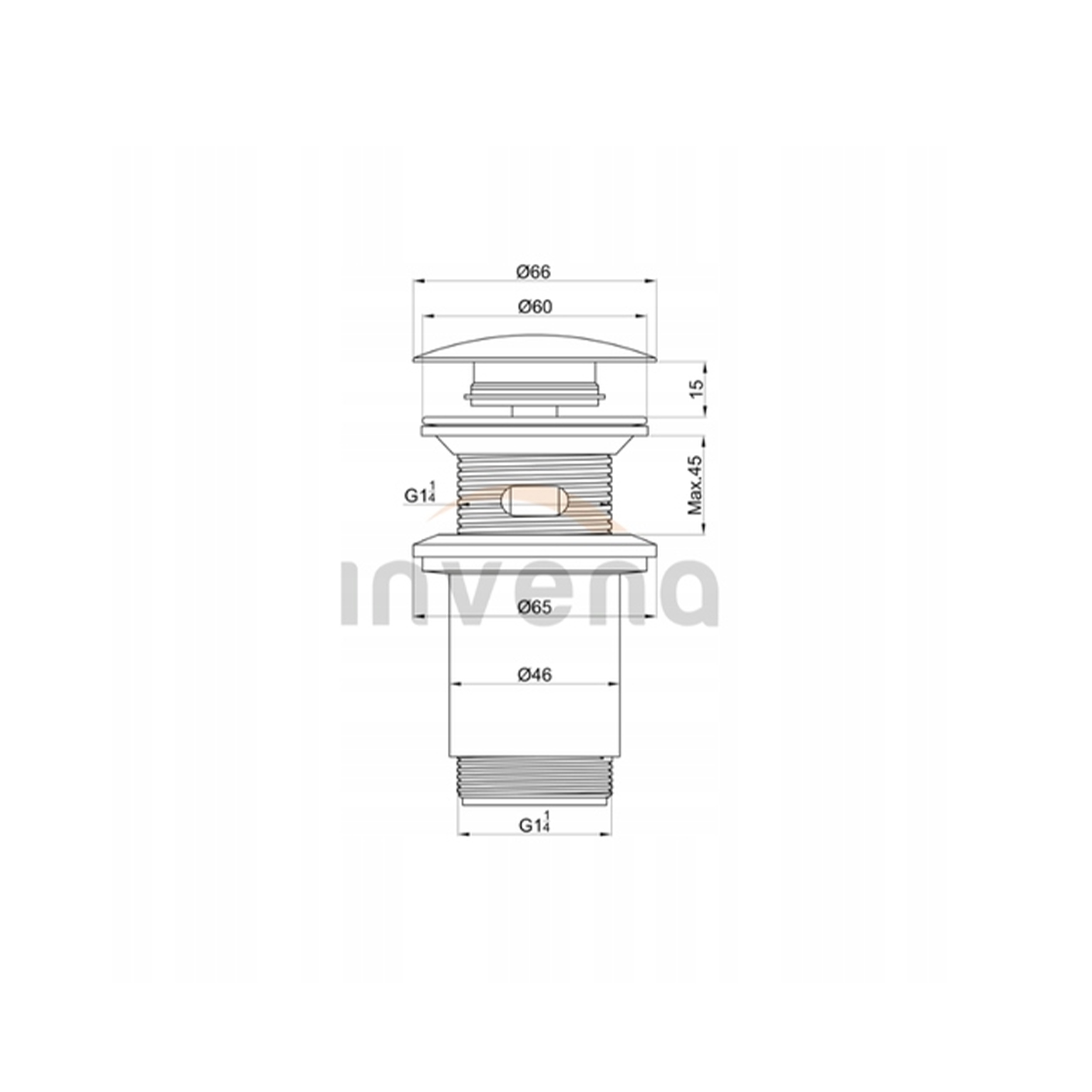 Dop de închidere universal Invena pentru lavoare cu și fără revărsare.