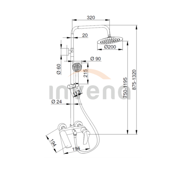 • Coloană de duș reglabilă în înălțime: de la 87,5 la 132 cm