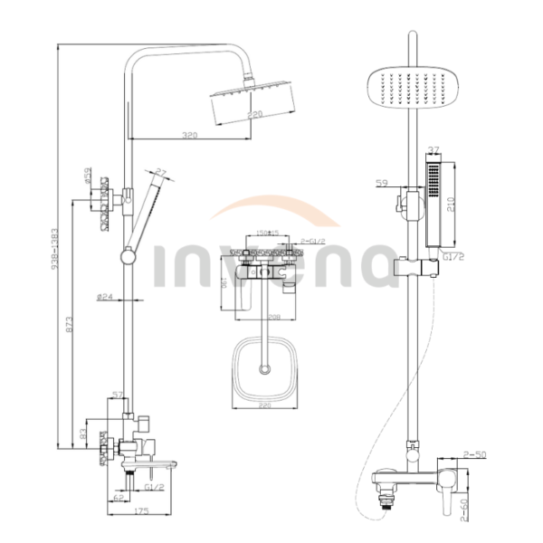 Coloana de duș cu baterie, crom, din gama Invena Glamour este alegerea perfectă pentru cei cărora le plac soluțiile moderne. Dușul tip ploaie este echipat cu o baterie de duș/baie, ceea ce îl face să se potrivească perfect, completând astfel zona de duș.
