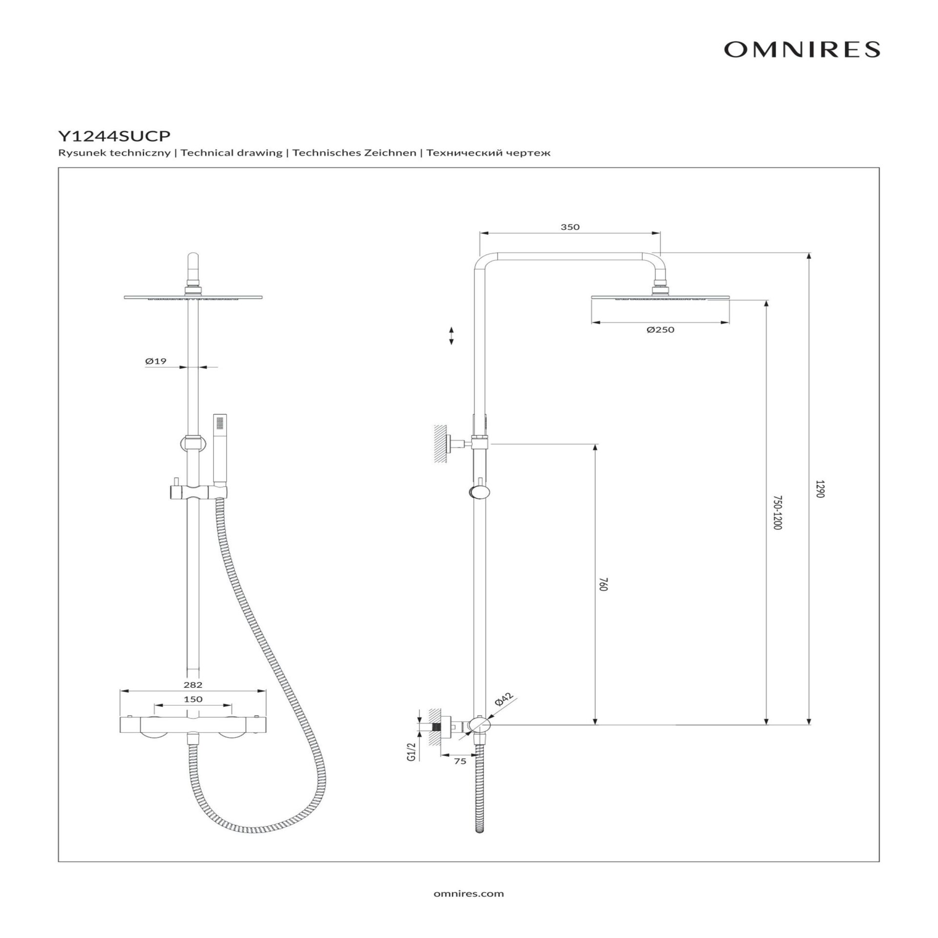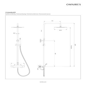 - Cap de dus din alama, dimensiuni: ø25 cm, atingere de la perete: 35 cm
