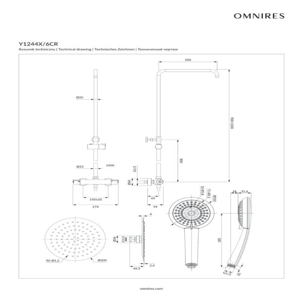 Coloana de dus cu baterie termostatata Omnires Y crom