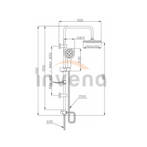 - Duș cu cap, înălțime: 96 cm