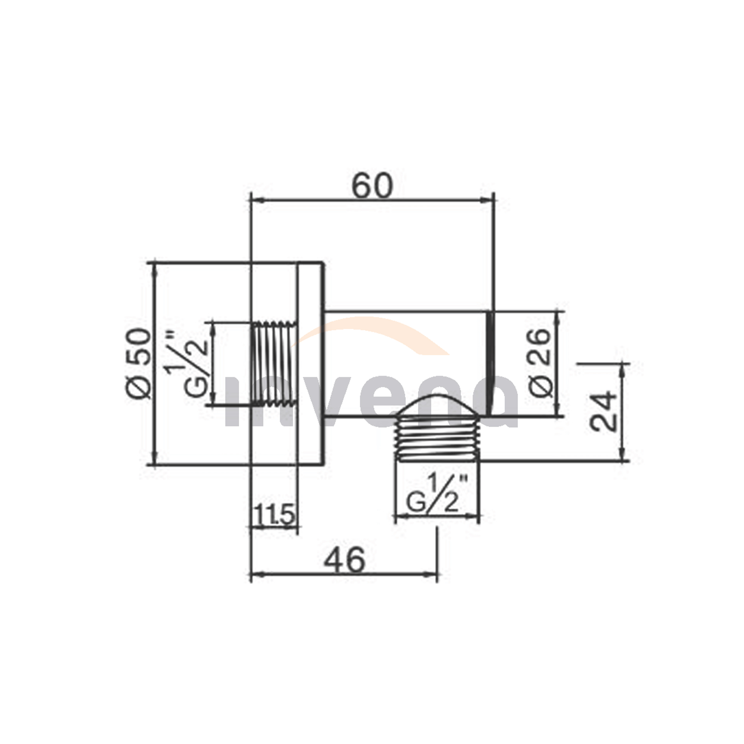 Conector de duș unghiular Invena, rotund, din alamă, cromat.