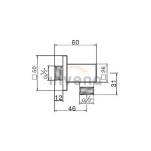 Conector unghiular de duș Invena pătrat, pătrat, confecționat din alamă, în crom.