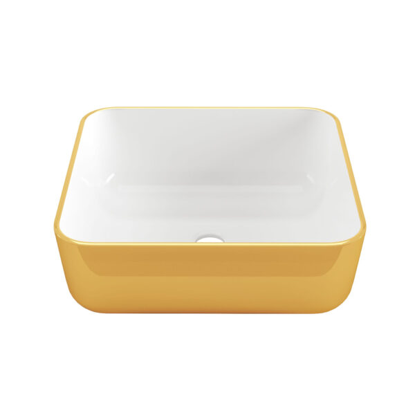 Lavoarul de blat Invena MALAGA încântă prin culorile sale neobișnuite, care nu pot fi trecute cu indiferență. Auriul strălucitor adaugă o dimensiune luxoasă întregului interior și reflectă frumos lumina. Lavoarul are o formă pătrată cu margini ușor rotunjite, adăugând o notă de finețe. Partea laterală a bazinului este de 39 cm, astfel încât acesta își va găsi locul atât în băile mari, cât și în cele mici. Se va potrivi perfect în decoruri somptuoase și luxoase.