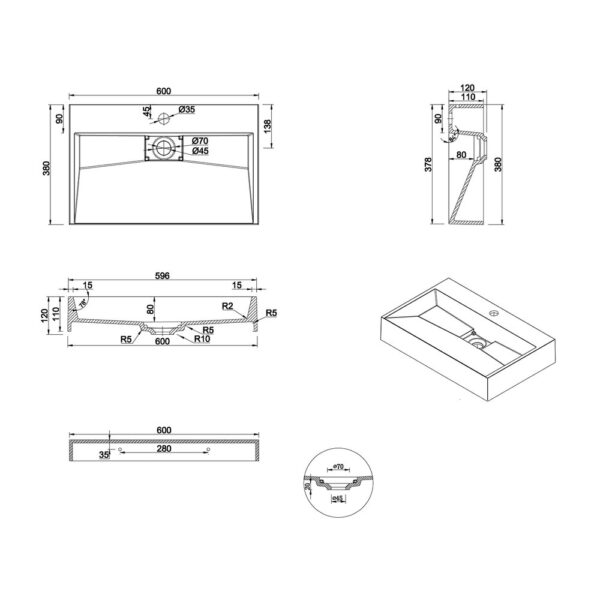 Lavoar din compozit pe blat Rune Garm 60 cm