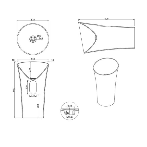 Lavoar freestanding din compozit Rune Baugi 51 cm
