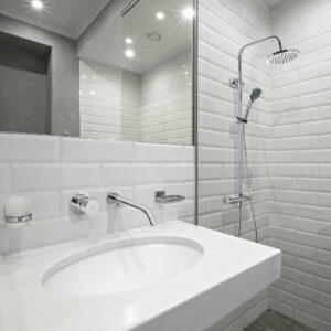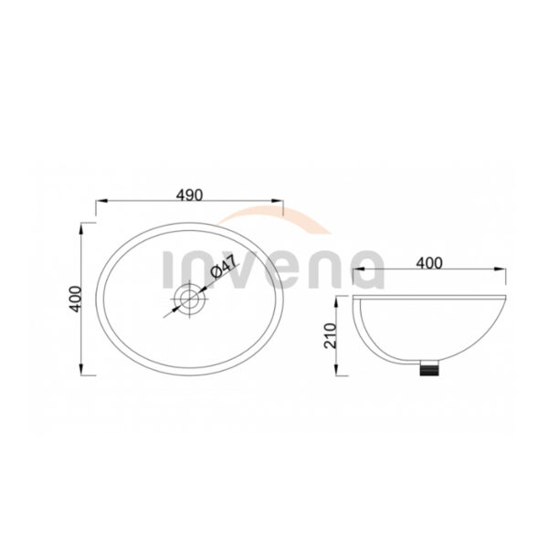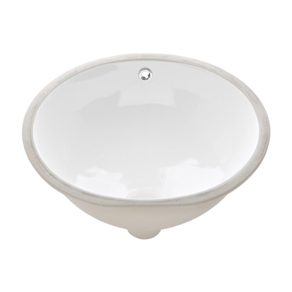 Chiuvetă ovală Invena MYKONOS , sub blat, de culoare albă. Permite o amenajare confortabilă a zonei de lavoar.
