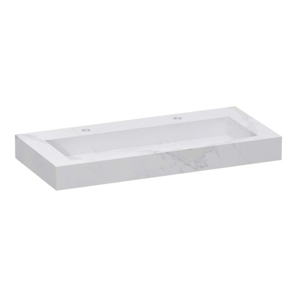 Lavoar pentru mobilier cu formă dreptunghiulară, cu 2 găuri de baterie Brauer iChoice Artificial Marble 60 Calacatta Gold cu aspect de marmură albă