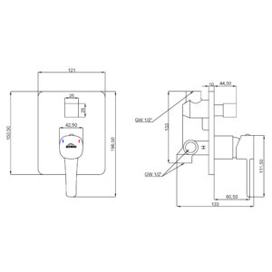 Baterie de duș încastrată Invena 2 funcții GLAMOUR crom