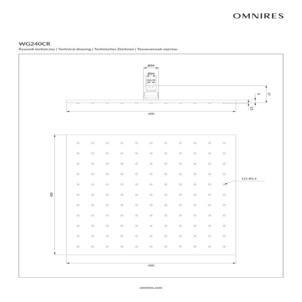 Palarie de dus patrata crom Omnires Ultra Slimline 400×400 mm