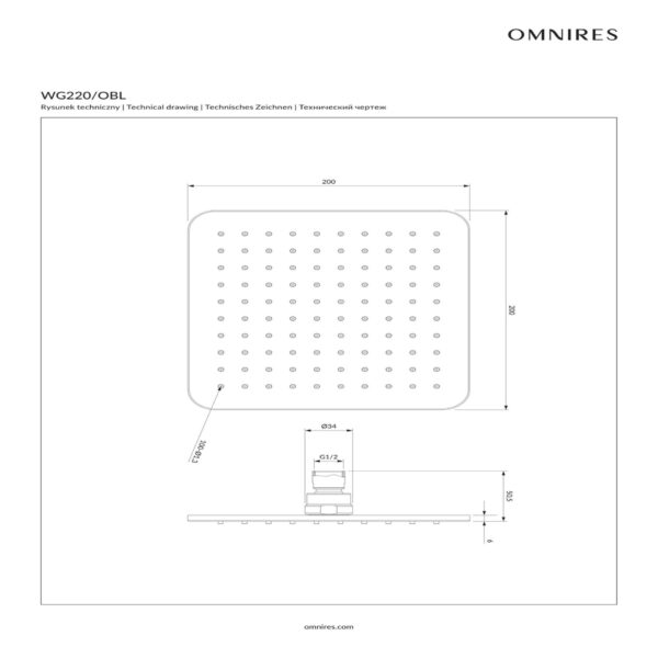 Palarie de dus patrata Omnires Slimline 200×200 mm negru mat