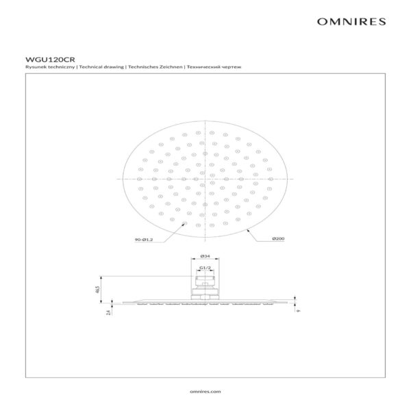 Palarie de dus rotunda Omnires Ultra Slimline 200 mm