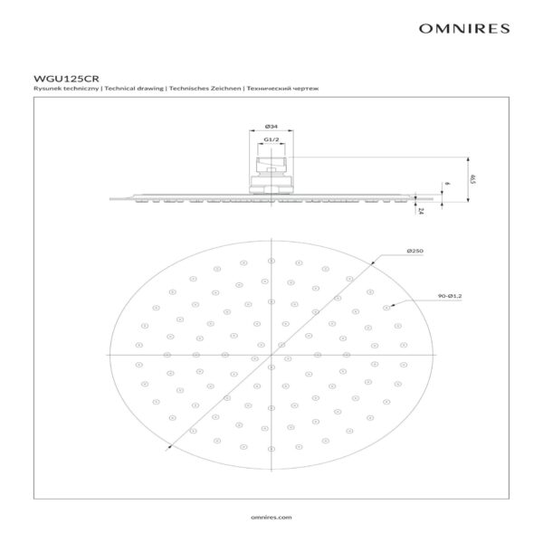 Palarie de dus rotunda Omnires Ultra Slimline 250 mm