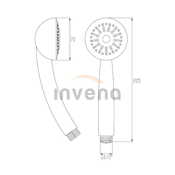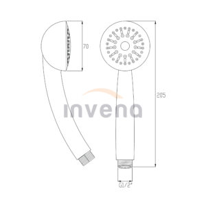 Pară de duș Invena ILIA cu un design clasic cu 1 funcție cu sistem anticalcar.