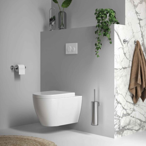 Toate articolele sunt finisate cu un strat PVD. Acesta este un strat superior subțire, dar foarte puternic, care protejează culoarea și suprafața produsului împotriva influențelor externe. Drept urmare, este mai puțin probabil ca suprafața să se zgârie și te poți bucura mai mult timp de accesoriile din baie.