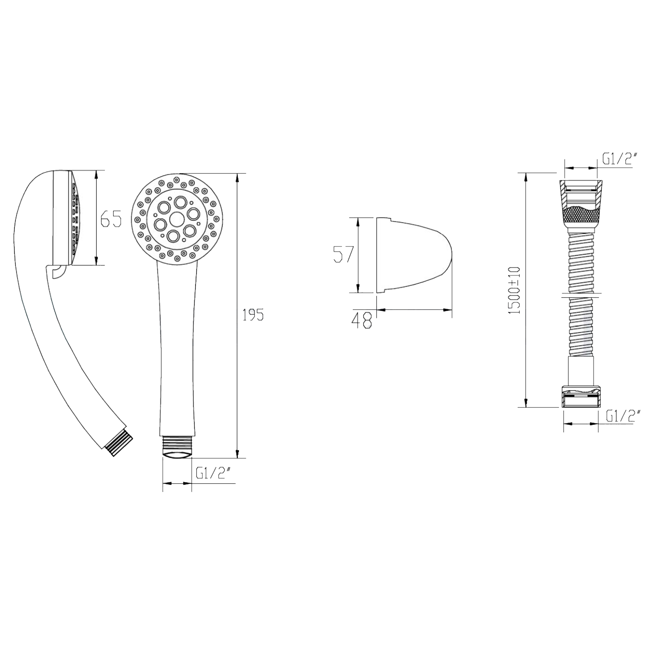 - Duș de mână cu 3 funcții (pulverizare normală, pulverizare mixtă, hidromasaj), Ø 6,5 cm,