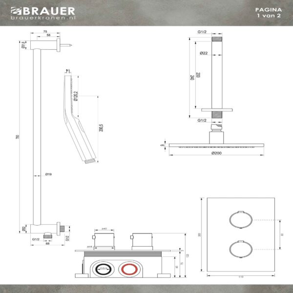 Set de duș încastrat 2 funcții cu pălărie de 20 cm Brauer Edition Set 47