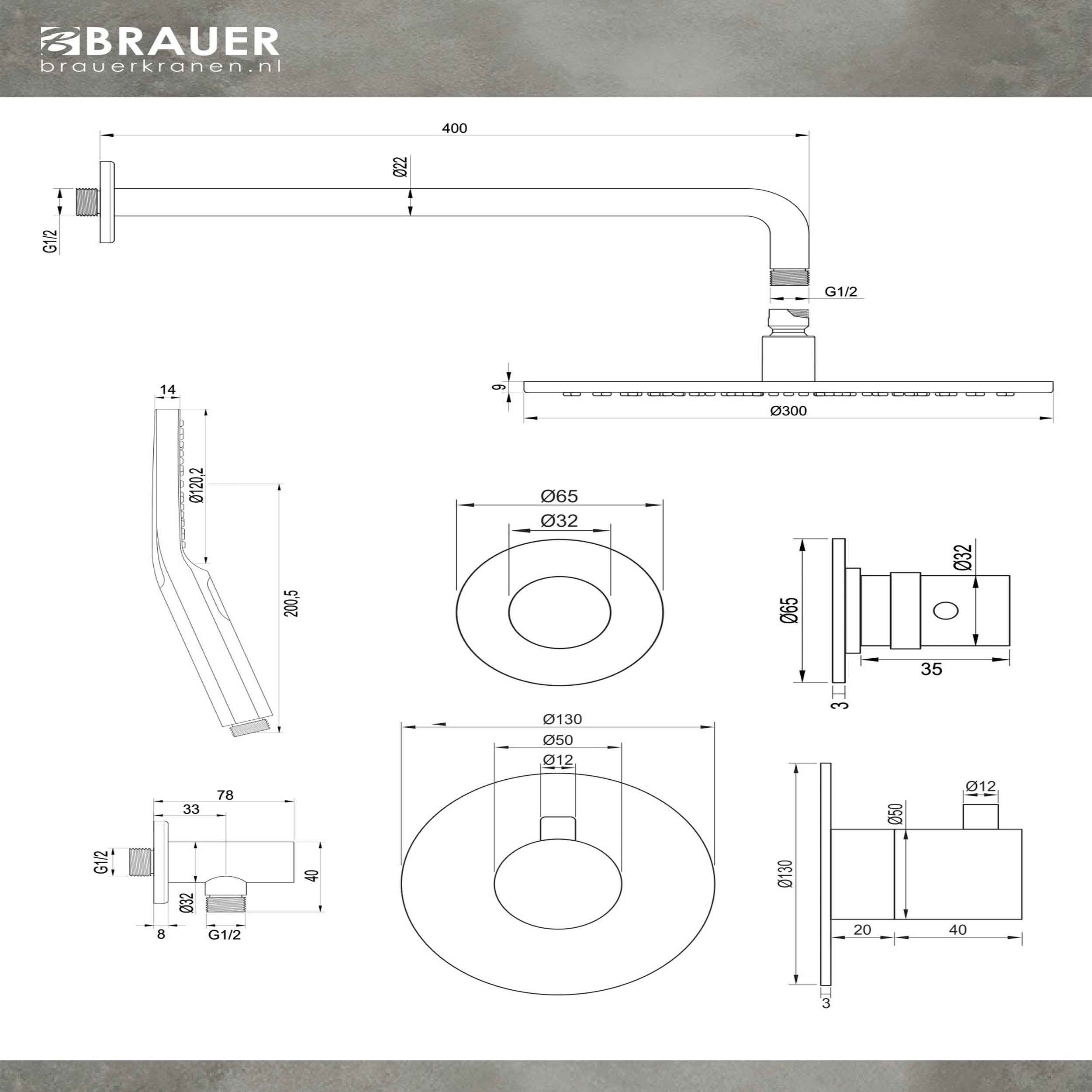 Set de duș încastrat 2 funcții cu pălărie de 30 cm Brauer Edition Set 10