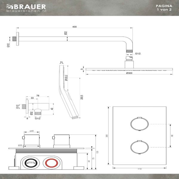 Set de duș încastrat 2 funcții cu pălărie de 30 cm Brauer Edition Set 34
