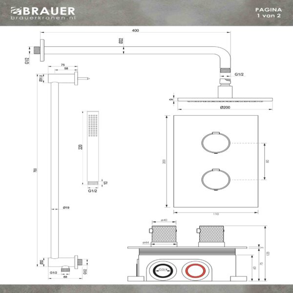 Set de duș încastrat cu pălărie de 20 cm Brauer Carving Set 39