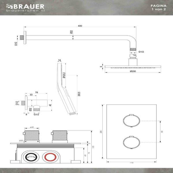 Set de duș încastrat cu pălărie de 20 cm Brauer Carving Set 33