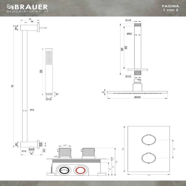 Set de duș încastrat cu pălărie de 20 cm Brauer Carving Set 41