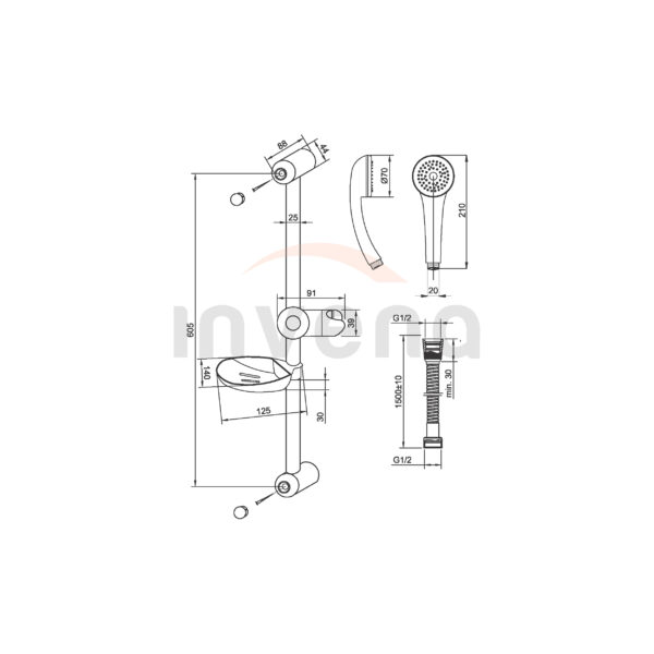 • Bară de suport pentru dușul de mână, înălțime: 60 cm