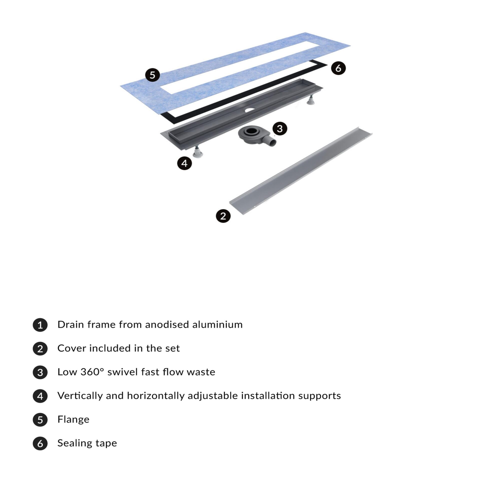 - Banda de etansare, flansa si suporturi de instalare (6 parti) incluse