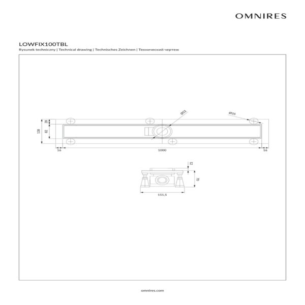 Rigola pentru dus Omnires Lowfix are un design minimalist si un profil exceptional de jos, oferind o mai mare libertate de instalare. Sifonul este prevazut cu capac pentru o imbinare aromnioasa cu podeaua baii. Debitul rapid de evacuare face ca dusul sa fie o experienta confortabila. Produsul este fabricat din aluminiu anodizat de inalta calitate, care asigura o durabilitate exceptionala si rezistenta la coroziune, in timp ce designul sau monolitic garanteaza o etansare completa.