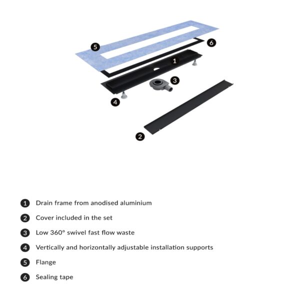 Set rigola pentru dus cu capac faiantabil Omnires Lowfix 80 cm negru